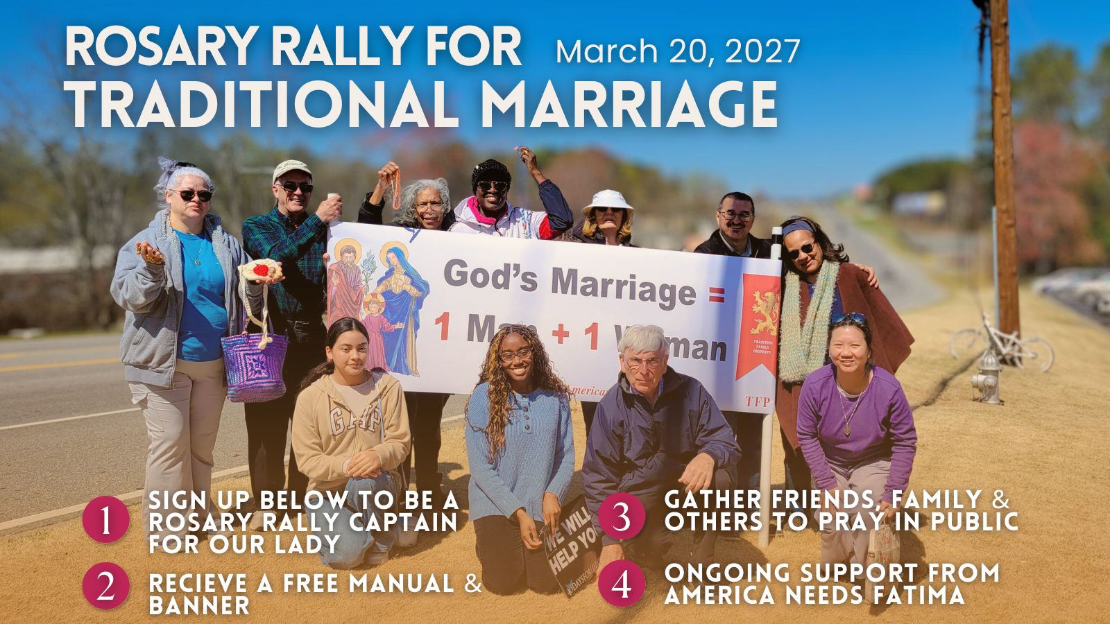 Hold a Rosary Rally to support God's Marriage between a man and a woman!